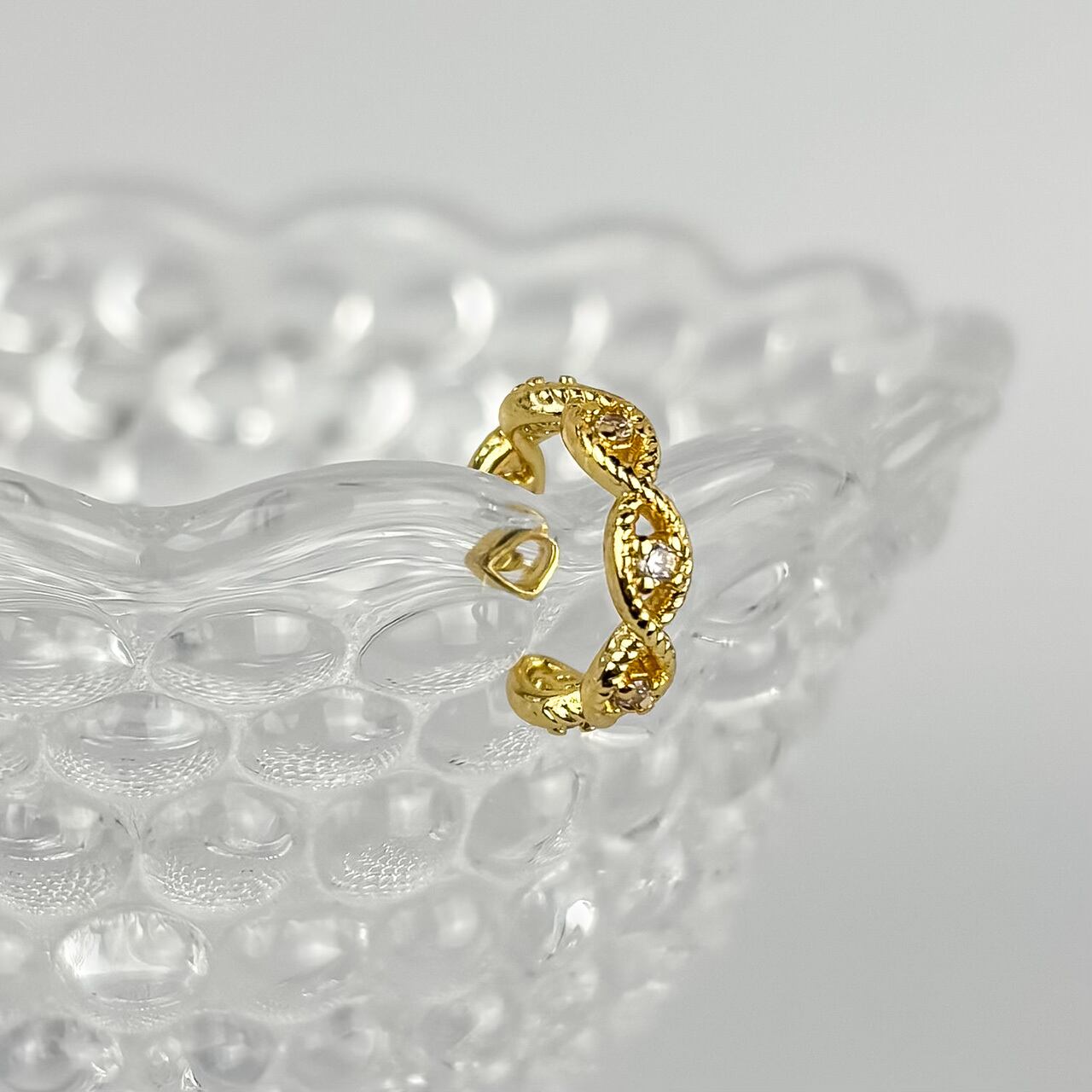 レースのように編み込まれた華奢なデザインに、小粒のキュービックジルコニアが上品にきらめきます。