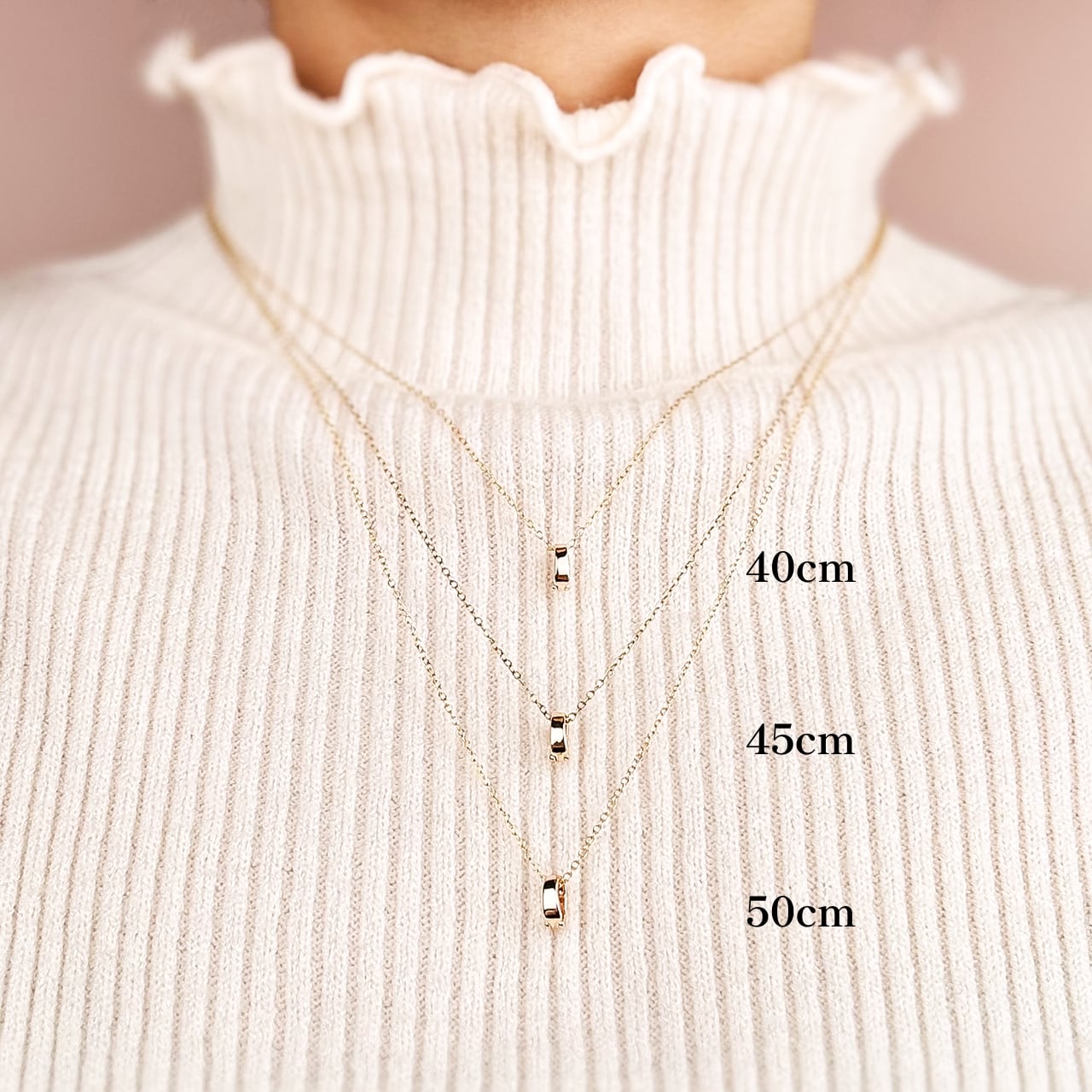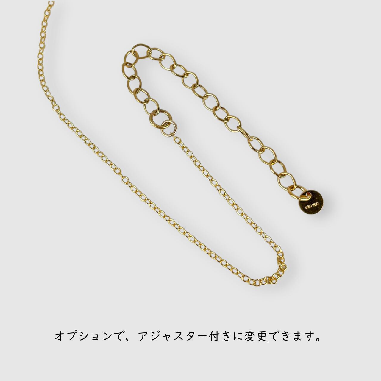 14kgf製の華奢な小豆チェーンも、首もとに上品な輝きを添えてくれます。