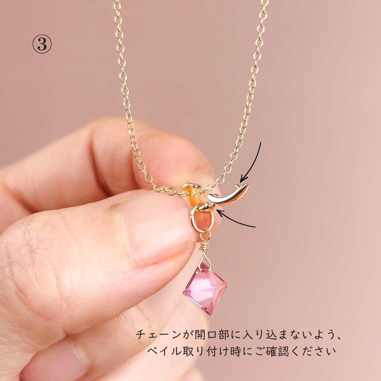 ・チャームをベイルにセットする際は、一度ネックレスチェーンから外して作業してください。