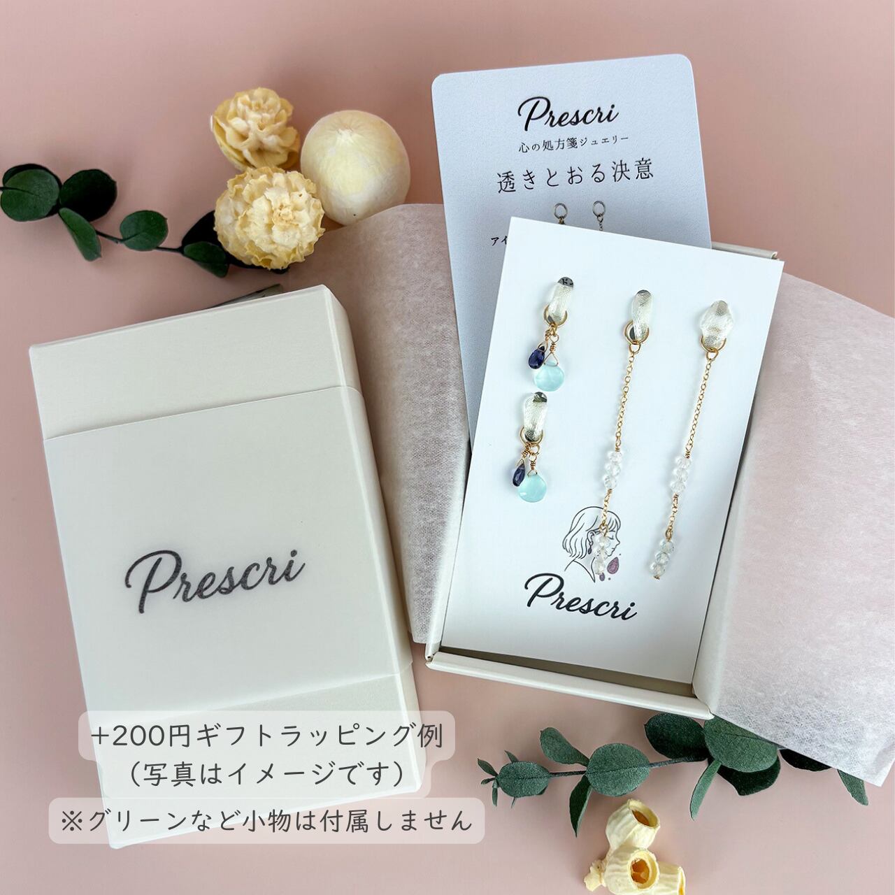 Prescriでは、すべての商品をPVC製のジッパー付きジュエリーポーチに入れてお届けします。