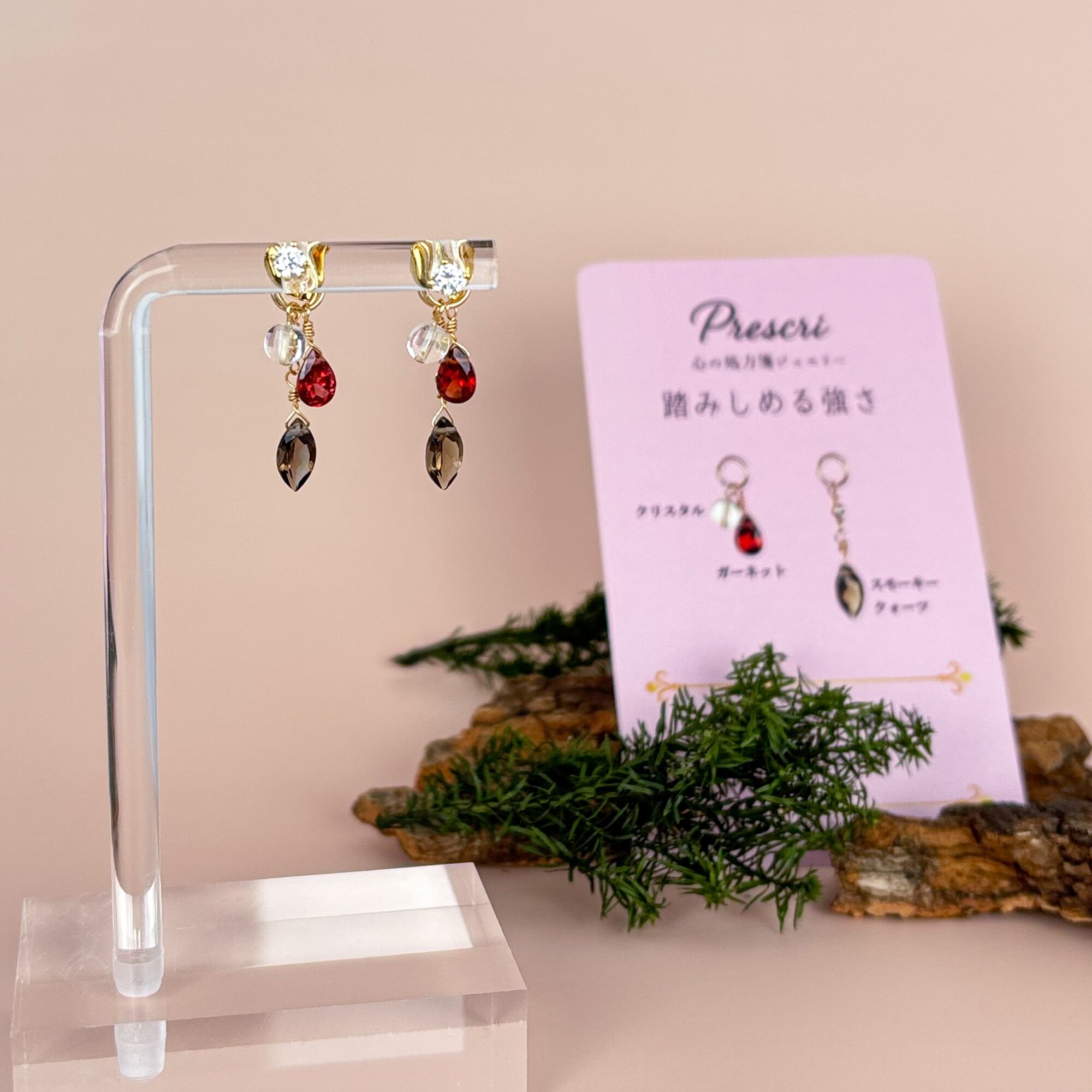 #Prescri #天然石アクセサリー #ガーネット #水晶 #クリスタル #スモーキークォーツ #パワーストーン #14kgf #チャーム #付け替えチャーム #イヤリング #イヤーカフ #ピアス #ネックレス #レッド系アクセサリー #ブラウンアクセサリー #ギフト #誕生日プレゼント #お仕事コーデ