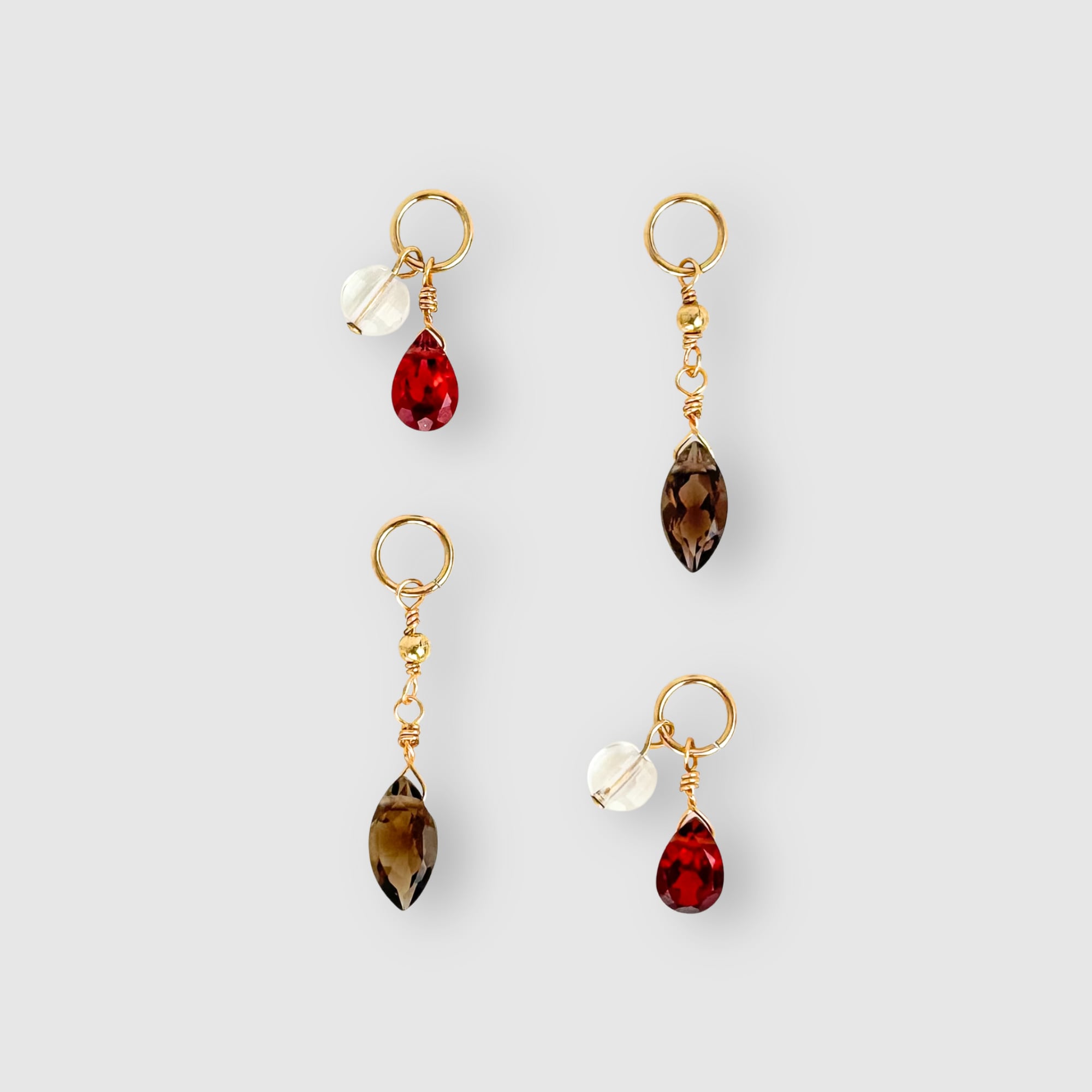 ・チャーム計4個:ガーネット+クリスタル×2種/スモーキークォーツ×2種