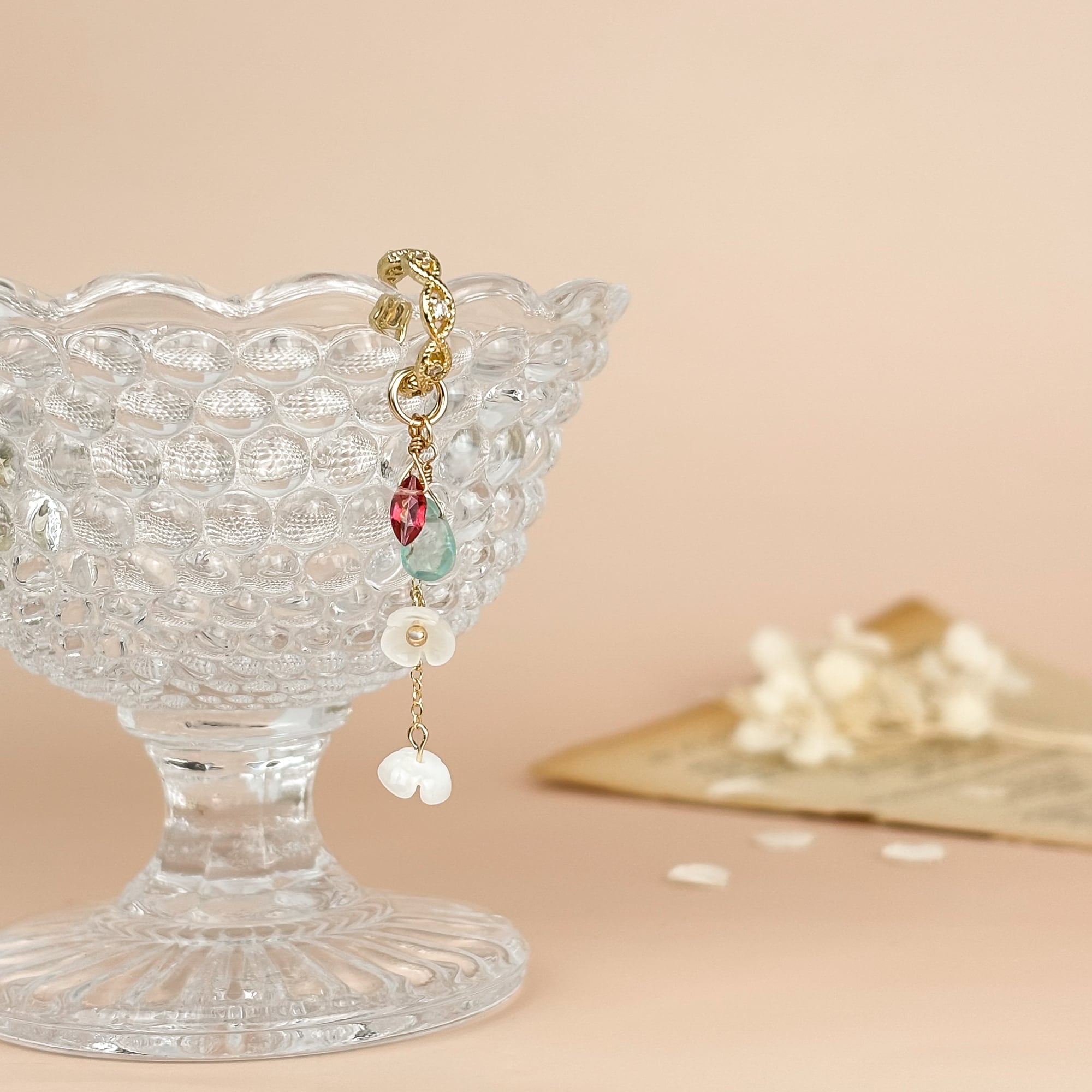 ・セット内容:チャーム計4個(ピンクトパーズ+ブルージルコン×2種/ホワイトシェル×2種)