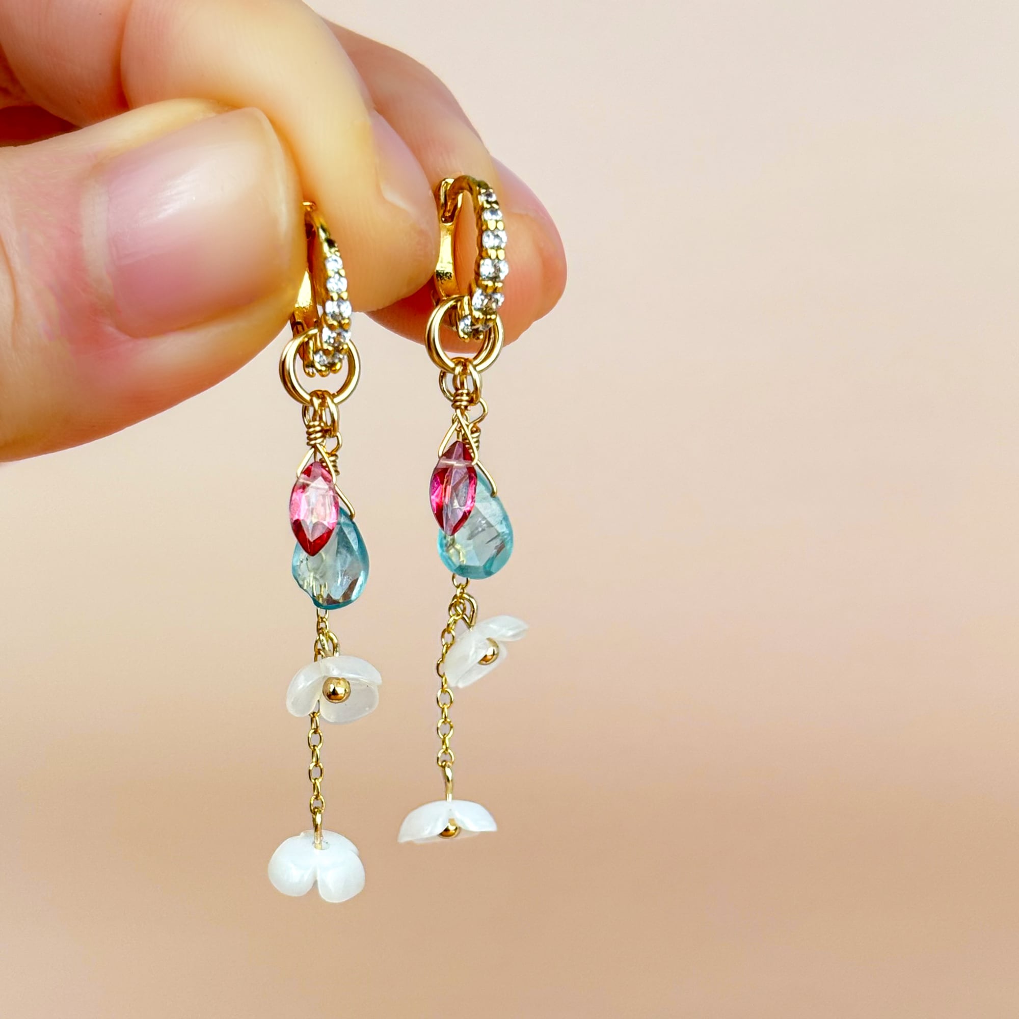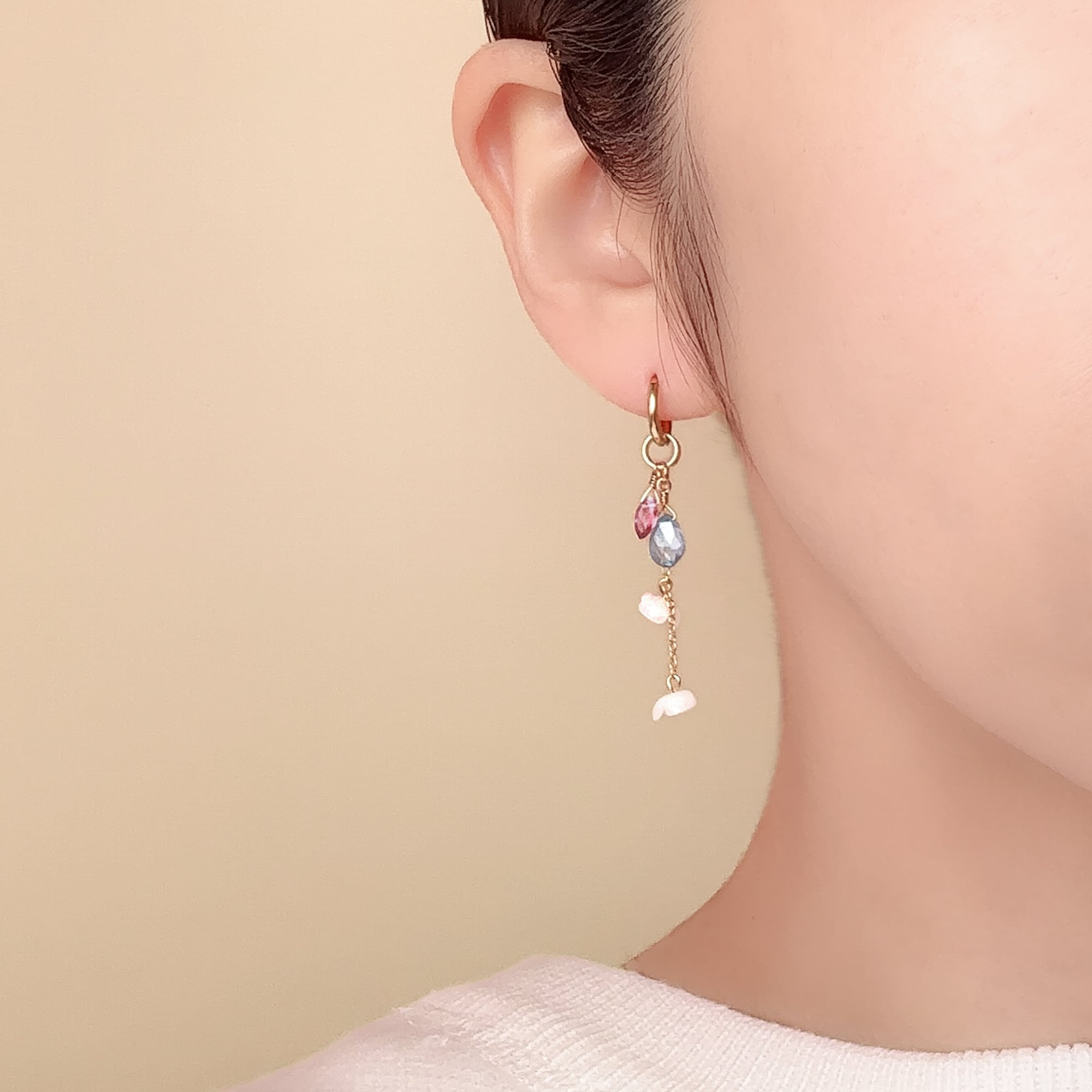 【付け替えチャーム】はじまりの彩り|ピンクトパーズ×ブルージルコン×ホワイトシェル 14kgf・14kgp/ピアス・イヤーカフ・イヤリング・ネックレス対応